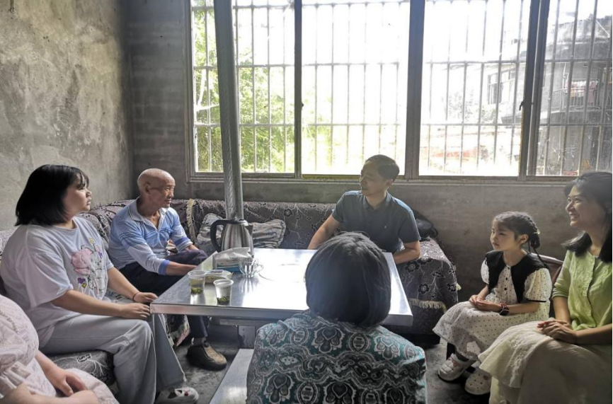 到家坐下后,吴国学一行与小吕以及爷爷奶奶拉起了家常。“今年家里农作物收成怎么样?”“家里有没有种茶叶啊?” “暑假在家里有什么收获啊?”