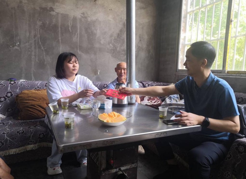 得知学校老师们要来家里看望,小吕和婶婶一起早早在路口迎接。“山高路远,这么热的天,学校老师们还专程从武汉赶过来,真的太感动了。”其婶婶连忙带领吴部长等人穿过院子来到了家里。