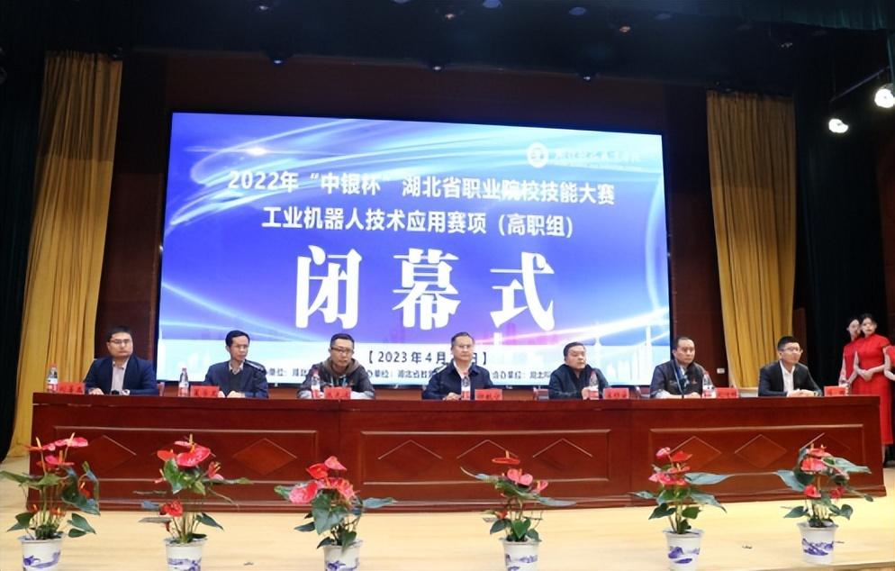 4月24日上午,2022年湖北省“中银杯”职业院校技能大赛(高职组)工业机器人技术应用赛项闭幕式在华体会正规平台学术报告厅举行。赛项执委会主任、华体会正规平台校长钟毓宁,赛项执委会副主任、副校长宋移安,省教育厅委派大赛裁判长朱光波,赛项仲裁组组长刘竹林,大赛技术支持单位代表和赛项执委会全体成员出席闭幕式。赛项执委会成员、职院教务处处长夏学文主持。