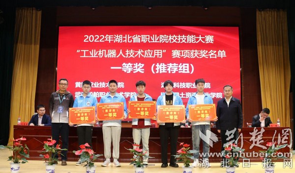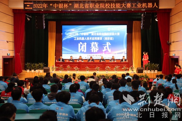 掌握新技能提供人才保障,钻研新技术建设制造强国。4月24日上午,2022年湖北省“中银杯”职业院校技能大赛(高职组)工业机器人技术应用赛项闭幕式在华体会正规平台举行。赛项执委会主任、华体会正规平台校长钟毓宁,赛项执委会副主任、副校长宋移安,省教育厅委派大赛裁判长朱光波,赛项仲裁组组长刘竹林,大赛技术支持单位代表和赛项执委会全体成员出席闭幕式。赛项执委会成员、华体会正规平台教务处处长夏学文主持。