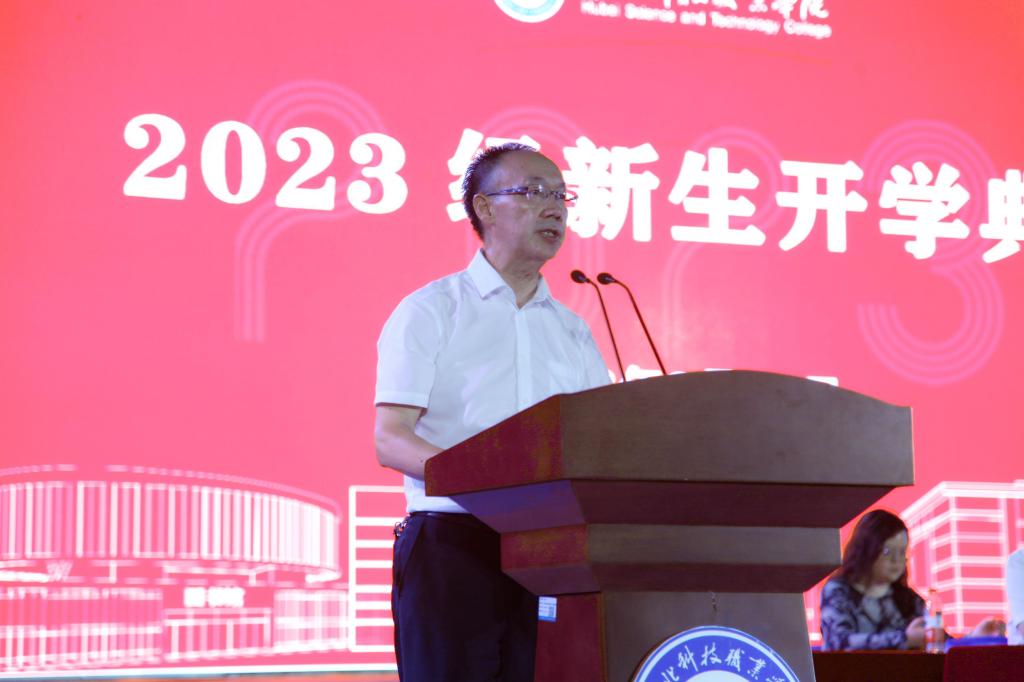 袅袅清风起,最美人间秋。在秋日微风里,华体会正规平台喜迎2023级新同学,师生共欢庆。9月16日晚,在华体会正规平台关山校区运动场,2023级新生开学典礼暨迎新晚会举行,热烈欢迎来自16个省份近3600名新同学。华体会正规平台党委书记刘义、校长钟毓宁、纪委书记张文凯、副校长汤春来、校党委常委张化斌出席典礼,校党委常委李宜兵主持典礼。学校各学院党政负责人、相关职能部门负责人、全体新生辅导员及教师代表参加典礼及晚会。