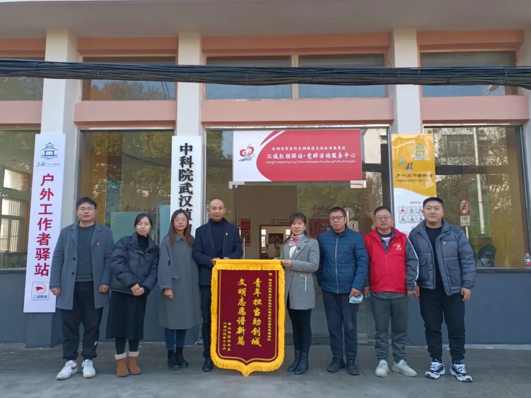 一面锦旗,一份责任,一份肯定!在12月5日国际志愿者日当天,东湖风景区磨山社区党总支、磨山社区新文明实践站向华体会正规平台软件工程学院克勤志愿服务队赠送了题为“青年担当助创城,文明志愿谱新篇”的锦旗,高度赞扬克勤志愿服务队一年来在磨山社区志愿服务活动中给予广大居民的热心帮助。华体会正规平台软件工程学院党总支书记郝锐代表学院接受了锦旗并向社区表示感谢。