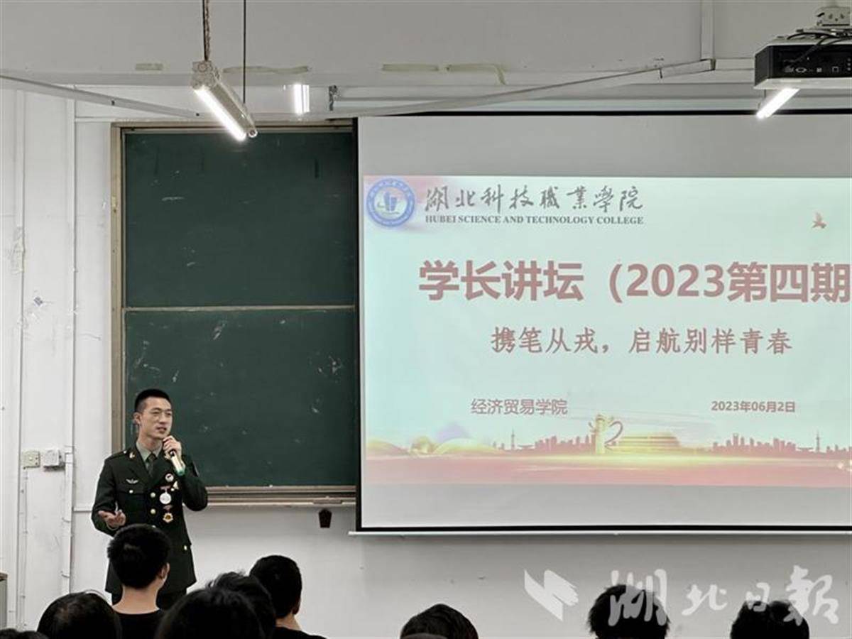 王磊始终记得,退役时在军旗下的庄严承诺“若有战,召必回”。回到校园后,他有一段时间没能适应身份的转变。“‘后劲’太大了,直到我带新生军训,以助理教官的身份重新穿上军装,才缓过神来,意识到自己真的退伍了,要迈入新的人生阶段了。”他还在学院举办的学长讲坛上,与学子们分享了自己的成长经历和感悟。
