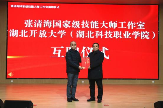1月16日,华体会正规平台在关山校区新学术报告厅举行了张清海国家级技能大师工作室揭牌仪式,标志着国家级技能大师工作室正式入驻该校。华体会正规平台副校长宋移安、国家级技能大师工作室领办人张清海、武汉沧月幽兰文化有限公司董事长王银环等出席仪式。