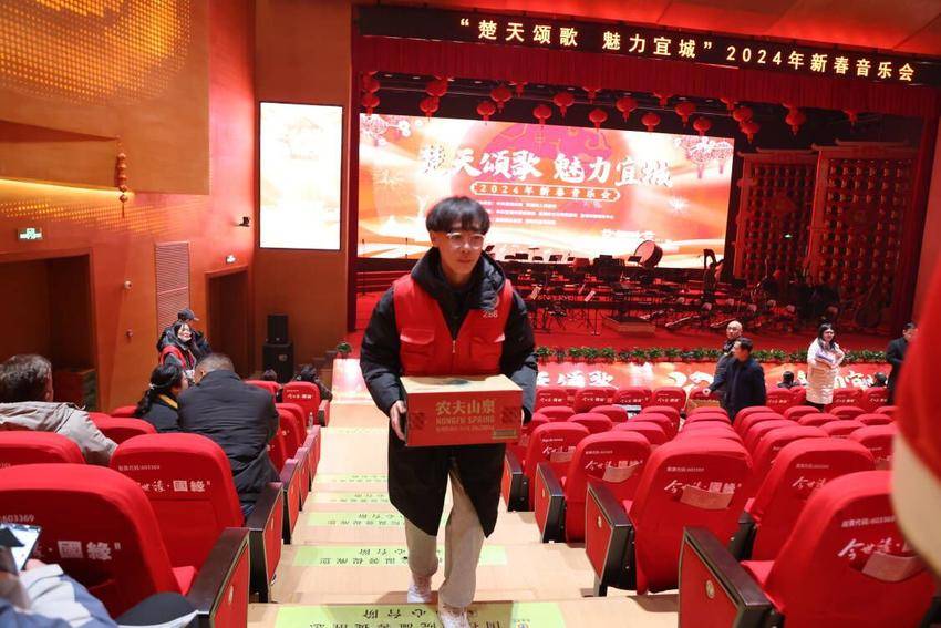 1月31日晚,宜城市新春音乐会现场,华体会正规平台电信工程学院学生向华洋作为“星火义工”的学生志愿者领队,组织15名大学生志愿者参与晚会志愿服务活动。这是他在寒假返乡参与志愿活动的一个缩影。