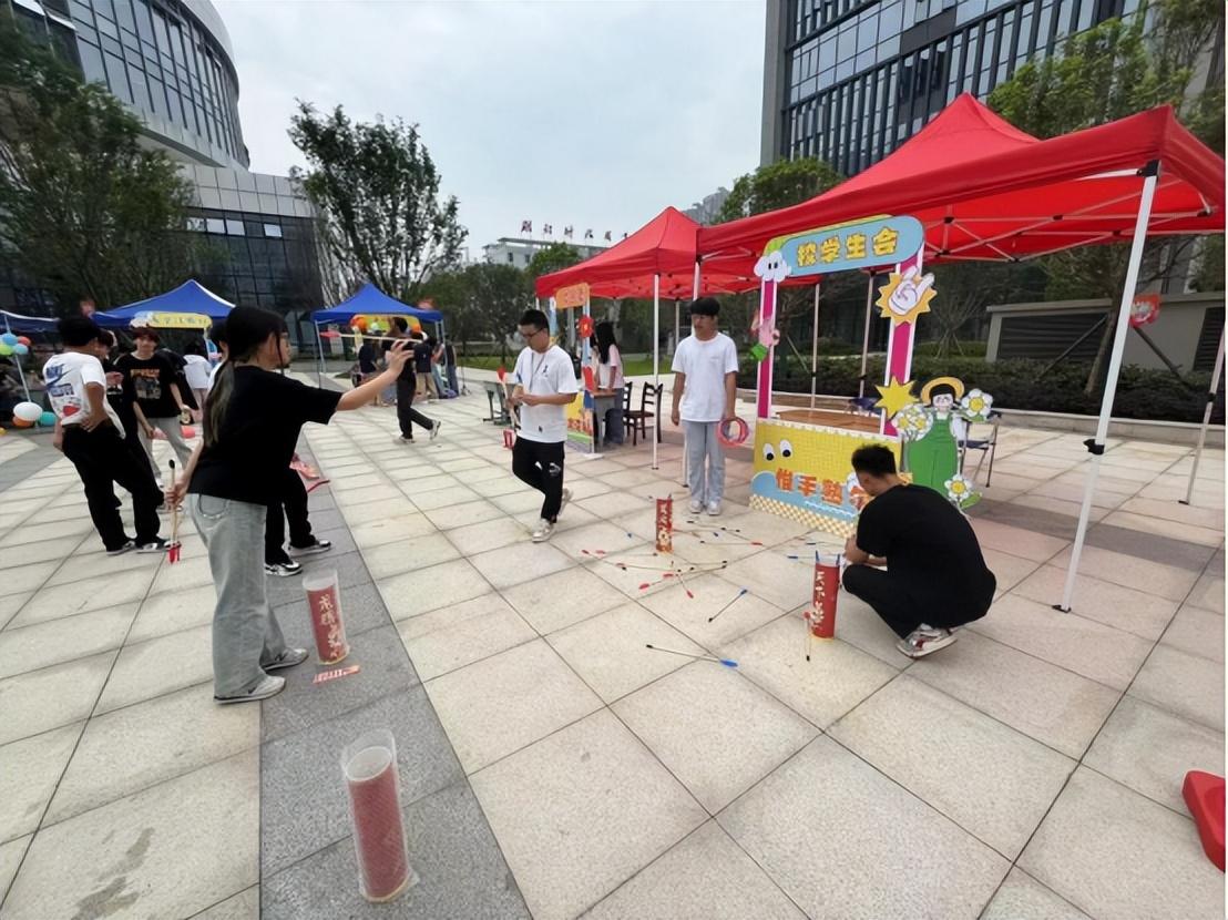 “真过瘾!我今天参加的项目是蹴鞠,这项运动非常考验技巧,我感受到了古人的智慧。”进入趣味游戏区,迎面而来的投壶、蹴鞠、锤丸等传统游戏,让同学们仿佛“穿越”时光隧道。“咣当!”瞄准、发力,蹴鞠划出一道优美的弧线,击过了龙门架。投壶、捶丸、套圈等项目也相继在游戏区轮番上演,同学们玩得不亦乐乎,观众们看得津津有味,摩拳擦掌想下场一试。活动现场同学们凭集章卡入场,参加各社团的闯关活动,集齐5到20个社团印章后即可领取奖品。同学们纷纷表示:“不仅在社团文化节看到了好看的节目,玩了好玩的游戏,还抽到了精美的奖品,非常开心!”