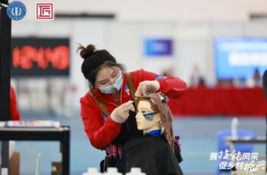 有了更好的平台,程亚林锚定技能大赛美发赛项目标,沉下心开始了日复一日的练习,备赛过程中耗费了上百个头模和数十把剪刀。寒暑假期间程亚林也没有休息,留在学校全心全力投入备赛。努力的汗水终将浇灌出丰收的果实,程亚林逐渐在各大技能大赛中崭露头角。在今年湖北省乡村振兴职业技能大赛美发赛项中,她凭借优异的表现拔得头筹,以第一名的成绩代表湖北省参加第二届全国乡村振兴职业技能大赛,并取得了全国第十的好成绩。每日无休地练习,让她在美发领域日益精进,也用刻苦、耐心、专注诠释了“工匠精神”。