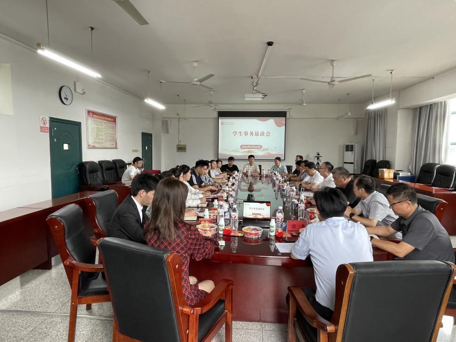 陈志祥做总结讲话。他对同学们为学校建设发展提出的宝贵意见表示肯定和感谢,并表示学校始终坚持以生为本的育人理念,时刻把人才培养、学生成长放在学校工作的中心地位。对于同学们提出的意见和建议,学校会虚心接受、照单全收、尽快解决,做到事事有回音、件件有落实,尽快给同学们满意的答复。他要求各职能部门要多渠道倾听学生心声,认真对待同学们的意见与建议,把学生的问题、意见和建议收集起来,近期能解决的马上解决,需要长期解决的做好计划,不能解决的做好解释。他强调,这样双向奔赴的学生事务恳谈会应该多办、并坚持办好,同时要进一步完善工作体制、机制,强化学生教育、管理、服务工作的责任感和使命感,真心实意为学生办好事、办实事、解难事,努力提升学生的幸福感和获得感。同时,他希望同学们保持“爱校如爱家”的初心,继续关心支持学校各方面工作,积极为学校事业高质量发展建言献策,并做好自我管理,努力提升学习能力和适应能力,共同创造幸福校园和美好未来。