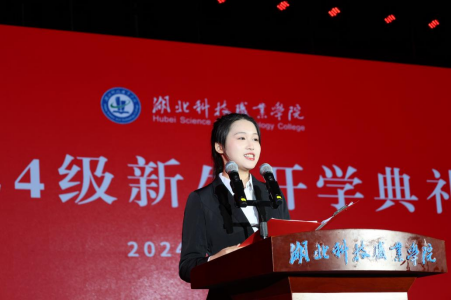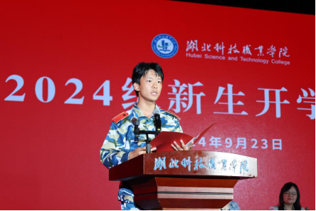 软件工程学院2024级软件技术专业李先恩同学作为新生代表发言。他用三句话明确了自己大学三年的奋斗方向:立志做力争上游的人、脚踏实地的人、乐于实践的人,并号召萌新们一同勇敢追梦,用勤奋和汗水、智慧和热情,共同谱写属于他们的湖科“心”故事。