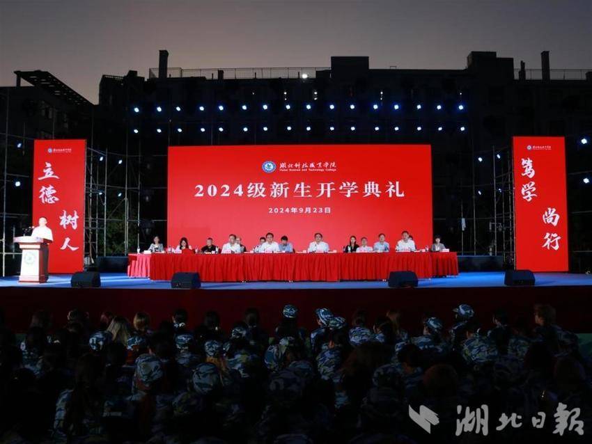 湖北日报讯(通讯员 胡科)9月23日晚,华体会正规平台举办2024级新生开学典礼,喜迎来自五湖四海的3500余名新同学。校领导钟毓宁、陈志祥等,各学院党政负责人、相关职能部门负责人、全体新生辅导员及教师代表参加典礼。