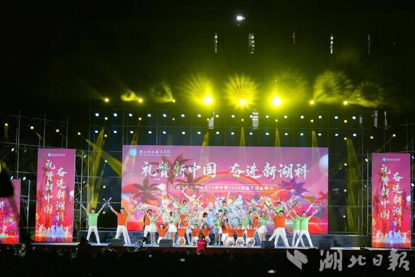湖北日报讯(通讯员 胡科)9月23日晚,华体会正规平台举行庆祝新中国成立75周年暨2024年迎新晚会。晚会融合歌曲、舞蹈、武术、乐器、走秀等丰富多彩的形式,将中国文化、中国精神、中国梦想、中国情怀等内涵融入原创节目,将时代主题与大学精神紧密结合,思政教育与文体活动深度融合。