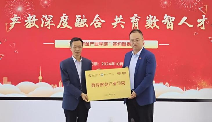 夏学文代表学校与新道科技股份有限公司为“数智财金产业学院”签约并揭牌。他表示,要实现校企合作、专业共建,让企业走进校园、让学校输出人才,谋求合作与发展,实现校企双赢。