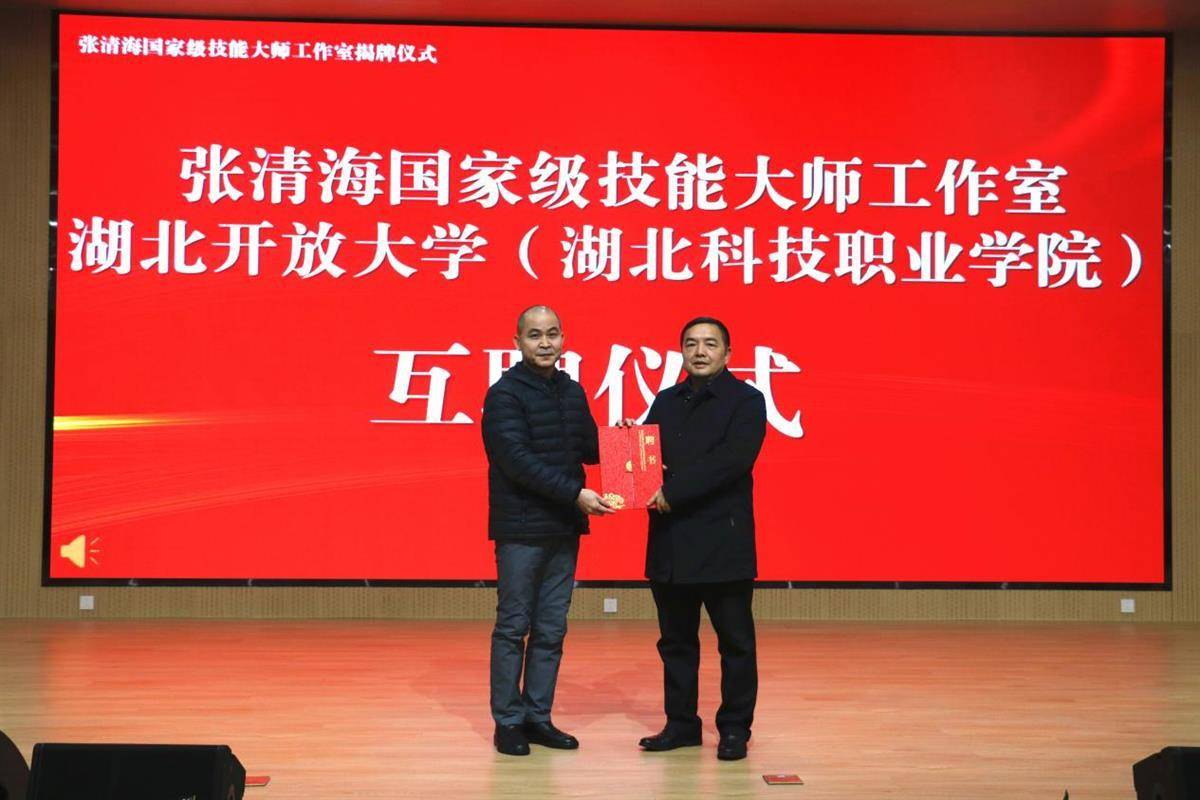 1月16日,华体会正规平台在武汉关山校区新学术报告厅举行张清海国家级技能大师工作室揭牌仪式,标志着国家级技能大师工作室正式入驻该校。该校副校长宋移安、国家级技能大师工作室领办人张清海、武汉沧月幽兰文化有限公司董事长王银环等出席仪式。