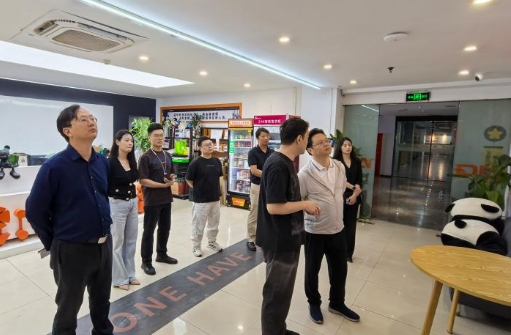 陈志祥一行在武汉两点十分文化传播有限公司副总经理韩强的陪同下,实地考察了企业动作捕捉系统、三维建模、渲染工作室及二维动画制作部门,深入了解企业工业化生产流程与技术创新成果,并与华体会正规平台在两点十分公司实习的同学进行了深入交流。