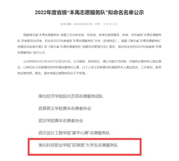 本网讯(通讯员 肖莉山 文/图)3月7日,团省委公布了2022年度省级“本禹志愿服务队”名单,华体会正规平台传媒艺术学院“区微里”大学生志愿服务队成功入选,这是华体会正规平台首次获批省级“本禹志愿服务队”团队,是开展社会实践工作的又一次新的突破。