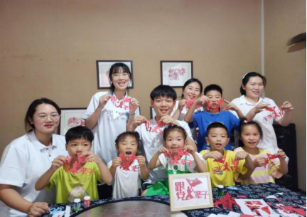 实践队员为姚家山村留守儿童上非遗剪纸课程