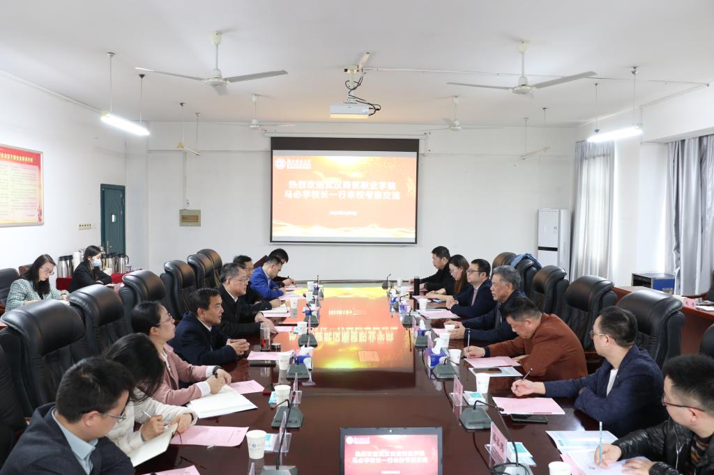 座谈会上,大家共同观看了《2022年学校十大新闻》宣传片。刘义对武汉商贸职业学院一行的到来表示热烈欢迎。他指出,学校传承已有的办学经验和成果,近年来进一步加强顶层设计,真抓实干,在专业建设、教育教学改革、人才培养以及校区建设等方面进一步发力,在双高校建设中取得了好的成效,在一些关键领域和核心指标上实现了新的突破,学校正处在高质量发展之中。刘义指出,武汉商贸职业学院是一所综合实力很强的学校,希望两校能加强交流和合作,实现共赢发展。