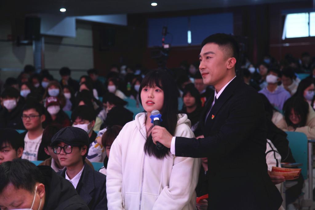 党的二十大代表、全国劳动模范、湖北省新华书店集团武汉市分公司党支部书记、经理周怡,以《青春力量勇担当铿锵奋进绽芳华》为主题,分享了自己成长的经历和感悟。她告诉在座的大学生:“任何事情都需要我们脚踏实地,前进道路上一定会遇到千难万阻,但只要我们始终怀揣梦想,并愿意为之积极思考、付诸行动,困难一定可以战胜,成功也一定可以到来。”