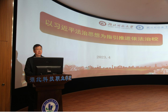 会上,张化斌围绕《以习近平法治思想为指引推进依法治校》主题,从习近平法治思想的主要内容、重大意义、精神实质以及推进学校依法治校等方面作阐述。他认为要切实把依法治理作为学校治理的基本理念和基本方式,融入、贯穿学校工作全过程和各方面,将依法治校作为学校办学、管理的基本遵循,推进教育综合改革,提升大学治理体系和治理能力现代化水平,推动形成学校依法办学、教师依法执教、学生依法受教的新格局,以法治思维和法治方式引领、推动、保障学校改革与发展。