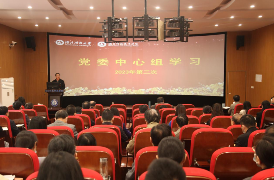 本网讯(通讯员 刘捷 文/图)4月7日上午,校党委中心组开展2023年第3次集中学习活动,深入学习领会习近平法治思想的核心要义、精神实质以及实践要求,进一步增强践行习近平法治思想的政治自觉思想自觉行动自觉,紧密结合学校实际,以法治思维和法治方式引领、推动、保障学校高质量发展,全面提升依法办学、依法治校水平。学习活动由校党委书记刘义主持,校长钟毓宁,校纪委书记张文凯,副校长宋移安、汤春来,校党委常委张化斌、李宜兵;校党委委员、校纪委委员,副处级以上领导干部参加学习。