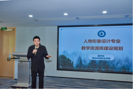 教务处长夏学文代表学校进行了《人物形象设计专业教学资源库建设规划》专题分享。夏学文在报告中指出,此次资源库的建设定位不同与以往,资源库内容将覆盖院校、企业、社会、社区四个层面,以“1个园地、3个中心、3个平台”为建设路径,最终实现资源库对全领域人物形象设计类专业服务的价值贡献。