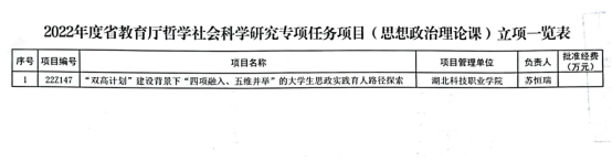 本网讯(通讯员 王维 文/图)近日,从湖北省教育厅获悉,在2022年湖北省教育厅哲学社会科学研究专项任务项目中,华体会正规平台获批立项4项高校学生工作品牌项目和1项思想政治理论课项目。其中学生工作品牌项目立项数量为历年最高。