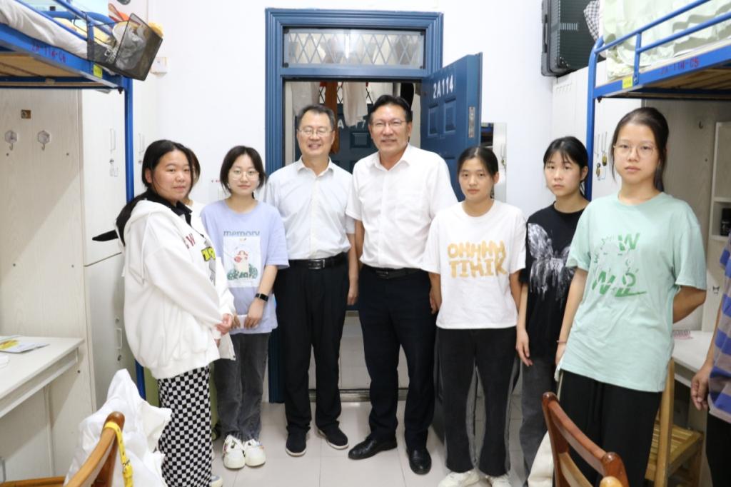王文森一行深入综合实训楼、图书馆、食堂、学生宿舍等场所,实地督导检查学校开学准备、后勤保障、食品安全、校园安全、施工安全等方面工作。检查中,王文森深入寝室与学生亲切交谈,了解寝室生活设施是否完备、学习生活是否有困难,勉励同学们勤于学、敏于行,努力提升自身综合素质,做一个全面发展的新时代大学生。