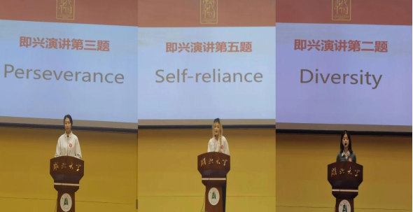 在决赛即兴演讲环节,三位同学旁征博引,从国内外时事和社会关注热点以小见大,窥见中国式现代化发展之磅礴和康庄大道,以丰富的知识储备、多元的文化视角、流畅的英语表达讲述了中国方案开创人类文明新形态、中国智慧促进世界发展新格局、中国主张实现人类命运共同体的中国故事。与众多院校的英语专业选手同台竞技,华体会正规平台参赛选手富有深度的演讲风格和落落大方的自信风采赢得了评委老师和现场观众的认可和好评。