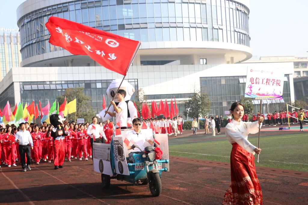 各学院的运动风采展示精彩纷呈,点燃了运动场的氛围。龙狮表演《龙腾狮跃战旗扬》、歌舞《超越梦想》、舞蹈《运动正青春,一起向未来》《舞韵湖科》《舞动经贸》、啦啦操表演……运动员们用青春活力与激情诠释竞争、合作、公平、坚持不懈的运动精神。最后,校长钟毓宁宣布运动会开幕。