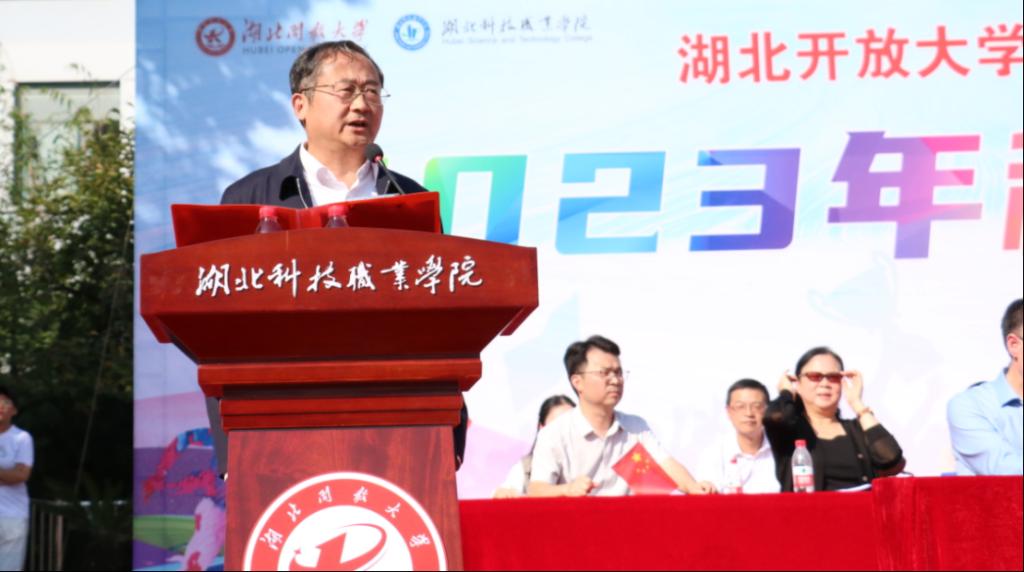 副校长宋移安在开幕式上致辞,他说,正值杭州第十九届亚洲运动会圆满落下帷幕之际,华体会正规平台2023年秋季运动会隆重开幕。这是展示勇气和力量的时刻,传递激情和梦想的时刻。少年强则国强,青少年有力量则国家有希望,健康的体魄是报效祖国、服务人民、享受幸福美好生活的前提,是中华民族旺盛生命力的体现。他呼吁大家养成体育锻炼的习惯,主动走向操场,在体育锻炼中享受乐趣、增强体质、健全人格、锤炼意志,让强体健身变成一份责任!