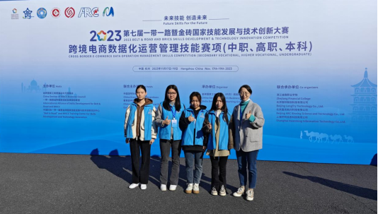 本网讯(通讯员 李智 文/图)11月18日,2023一带一路暨金砖国家技能发展与技术创新大赛跨境电商数据化运营管理技能赛项全国总决赛在浙江金融职院举行。大赛为期2天,共有来自全国100支参赛队伍同台竞技。学校工商管理学院2022级电子商务专业陈晶晶、舒雷、陈少敏、付子莹4名同学组成的参赛团队,在李智、胡婧两位老师的指导下,从全国574支报名参赛队伍中脱颖而出,获得全国复赛二等奖和全国总决赛三等奖的优异成绩。