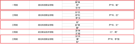 湖北省66所院校3120名学生参加初赛,其中来自湖北省27所高职院校的300余名选手晋级湖北省决赛。网络赛道中,华体会正规平台尹淑玲、喻香教师指导的裴高峰、郑妍、毛卫宇同学获得一等奖,居湖北省第3名;吕林、文松和李主国教师指导的孙梦杰、闵鸿钊、李博文等三组同学分别获得三等奖。