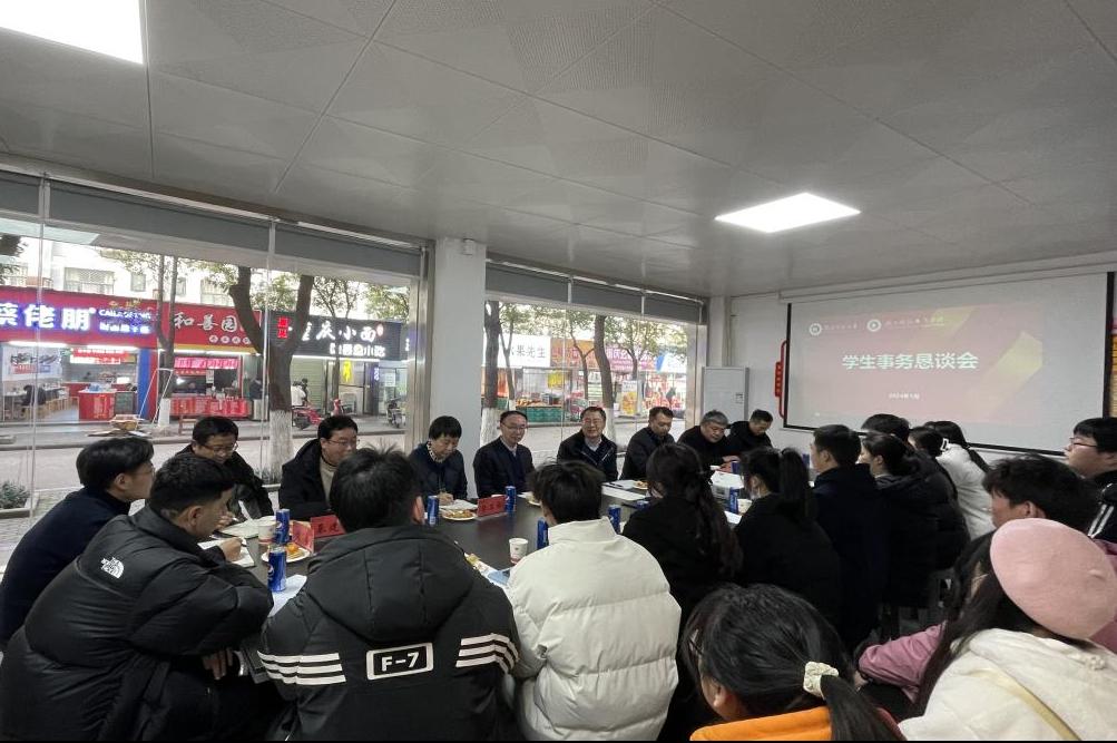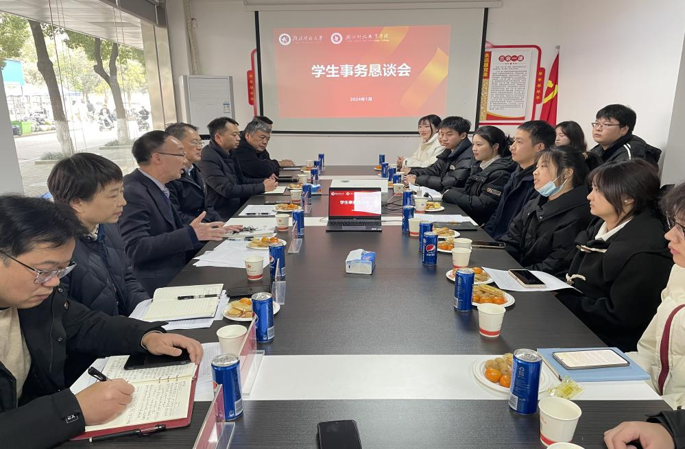 本网讯(通讯员 常凯源/文 杨星星/图)为了更好地倾听学生意见和建议,切实为学生办实事、解难事,1月9日下午,学校在关山校区一站式服务社区召开2023年学生事务恳谈会。党委书记刘义、党委常委李宜兵、党办校办、学工部、保卫部、团委、职院教务处、基建处、后勤服务集团等职能部门负责人以及来自各二级学院的18名学生代表参加会议,会议由李宜兵主持。