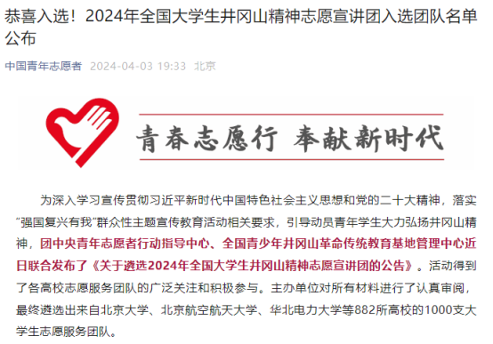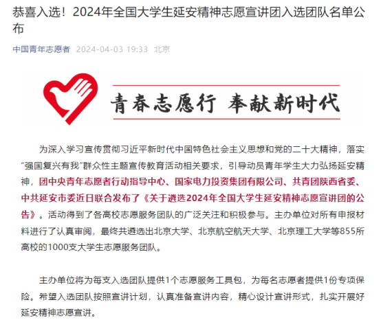 头雁实践宣讲团入选2024年全国大学生延安精神志愿宣讲团