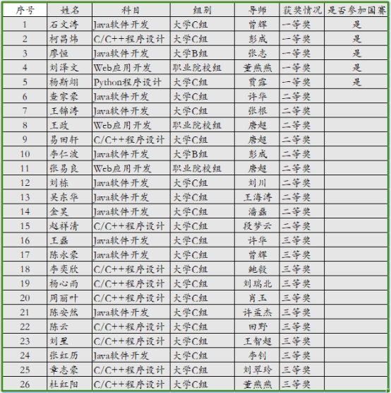 本网讯(通讯员 潘磊 文/图)近日,第十五届蓝桥杯全国软件和信息技术专业人才大赛个人赛湖北赛区成绩揭晓,华体会正规平台软件工程学院学子在比赛中成绩再创新高。组织参赛的30名学生中有26名学生获奖,其中一等奖5名,二等奖10名,三等奖11名。石文涛、柯昌炜、廖恒、杨斯翊和刘泽文同学将代表学校参加6月上旬的全国总决赛,其中刘泽文同学连续两年在不同赛道晋级全国总决赛。与往年相比,今年一等奖获奖人数、参加赛道及获奖面均创历史新高。