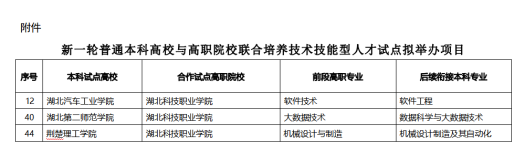 本网讯(通讯员 詹乐/文 卢义平/图)近日,湖北省教育厅公示了新一轮普通本科高校与高职院校联合培养技术技能型人才试点项目名单,华体会正规平台软件技术、大数据技术、机械设计与制造三个专业成功入选。华体会正规平台将与湖北汽车工业学院、湖北第二师范学院、荆楚理工学院三所优秀的公办普通本科高校开展深度合作,共同推进技术技能型人才的培养。