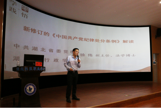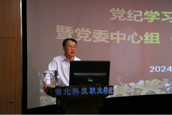 本网讯(通讯员 刘捷/文 徐敏/图)5月13日下午,学校召开党纪学习教育读书班专题辅导报告会暨党委理论学习中心组扩大会议,进一步深入学习贯彻习近平总书记关于党纪学习教育的重要讲话和指示精神,认真研读《中国共产党纪律处分条例》,准确掌握其主旨要义和规定要求,推动党纪学习教育走深走实。中共湖北省委党校政法教研部副主任,湖北省“八五”普法讲师团成员徐伟作辅导报告。校党委委员、纪委委员,副处级以上领导干部,党总支、支部书记参加会议。党委书记刘义主持会议并讲话。