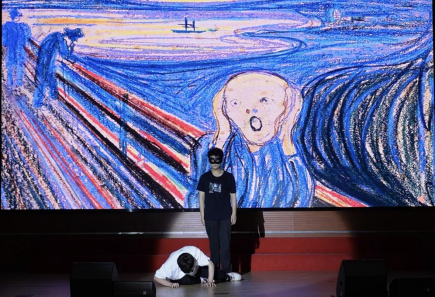 《暗键》这部作品,以黑色面具人隐喻“键盘侠”,以提线木偶的舞蹈形式展现主人公李阳被网络暴力操控。通过“替身”技术,李阳与内心的自己展开激烈对话,以发人深省的问答映照内心冲突。最后在众人的努力和帮助下,李阳终于打开心扉,挣脱网络暴力的旋涡。剧目融入木偶戏、舞蹈、替身镜面、隐喻技术、行为雕塑,以及灯光、服装等元素,完整呈现了主人公李阳的心理发生、发展、转化与和解的过程,形象再现了互联网口诛笔伐、暗箭伤人的乱象,呼吁全体网民,用行动维护网络的公平正义,莫让“暗键”成为伤人利剑。