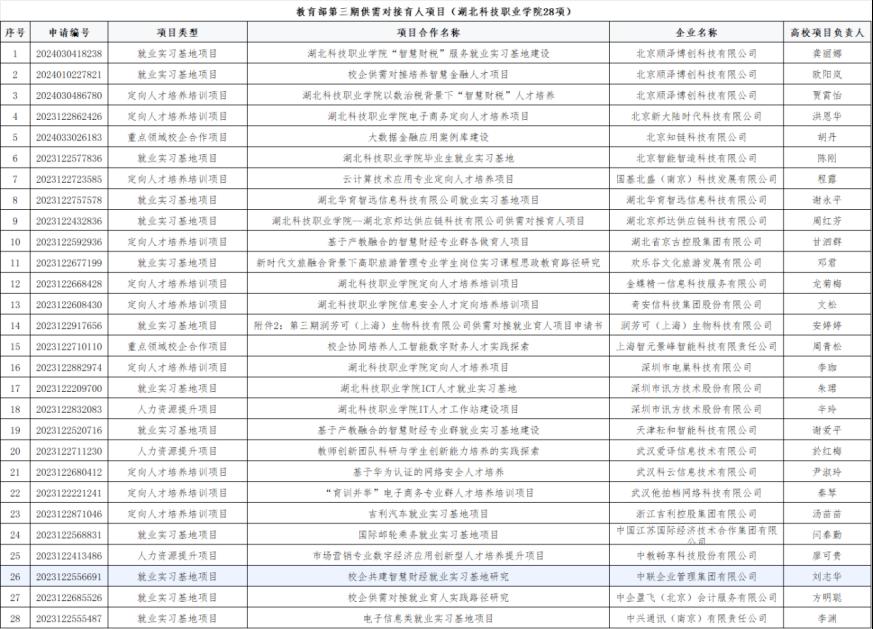 本网讯(通讯员 汤苗苗 文/图)6月14日,教育部高校学生司发布《关于公布教育部第三期供需对接就业育人项目立项名单的通知》,华体会正规平台28项就业育人项目获教育部批准立项。立项数量位居全省高职前三。