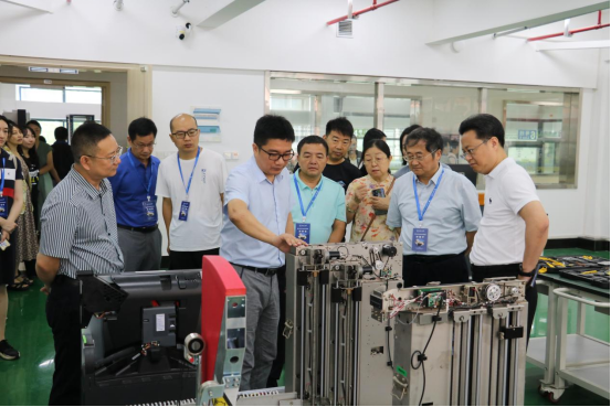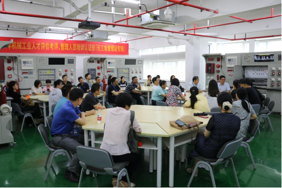 在浙江机电职业技术学院,培训班一行参观了智能制造技术应用等实践教学基地、数字技术实践基地等重点实训场地。随后的座谈中,浙江机电职业技术学院继续教育学院院长边浩毅教授介绍了他们学校近年来在“双高”专业建设上取得的成绩。全体学员就专业建设、课程体系建设、校企合作、技术服务产教融合、技能大赛等方面的问题,进行了交流研讨。
