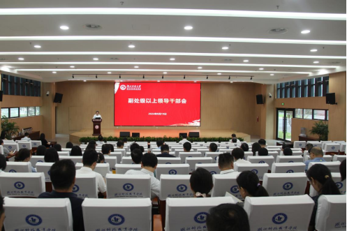 校长陈志祥指出,这次机构改革是校党委在审慎谋划、充分调研、广开言路,认真研究的基础上推行,是深入贯彻党的二十届三中全会精神的重要举措,更是学校推进事业实现可持续高质量发展的全新起点。他对学校机构改革工作提出三点意见:一是以高度政治自觉充分理解学校推进机构改革的意义。从宏观上要深刻领会党的二十届三中全会精神,所有领导干部要当改革的促进派和实干家,将改革进行到底;中观上要紧跟教育发展形势,把握发展机遇,开放教育要抓住体系化办学,数字化赋能,社会化服务三个关键词,职业教育要通过示范项目提高办学水平;微观上学校各单位(部门)的管理人员要从讲政治的高度去理解改革。二是以高度思想自觉坚决拥护学校推进机构改革的决定。本次机构改革突出三个特点:首先是稳根本,改革主要集中在理顺体制、优化职数职能等方面,稳住了基本盘。其次是促融合,开放教育和职业教育相互促进,要形成1+1>2的局面。最后是谋发展,将部分职能划归至更有抓手的部门,让改革后的管理和经济效益得到明显提升。三是以高度行动自觉贯彻落实学校推进机构改革的部署。抓宣讲、抓执行、抓发展,认真贯彻落实校党委积极推进改革,积极谋求发展的要求,从改革方案原则和精神两个层面抓好落实。