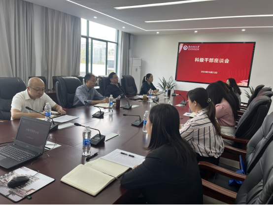 本网讯(通讯员 汪萍萍 文/图)为进一步加强干部队伍建设,促进学习交流,10月12日上午,学校组织召开科级干部座谈会。校长陈志祥出席会议并讲话。会议由副校长汤春来主持。科级干部代表及人事处相关同志参加座谈。
