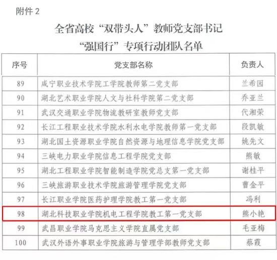 本网讯(通讯员 郭兵 文/图)近日,省委教育工委公布全省高校“双带头人”教师党支部书记“强国行”专项行动团队名单,华体会正规平台机电工程学院教工第一党支部成功入选。这是华体会正规平台在基层党组织建设中的又一次新突破,也是学校以高质量党建引领高质量发展过程中取得的重要成果。