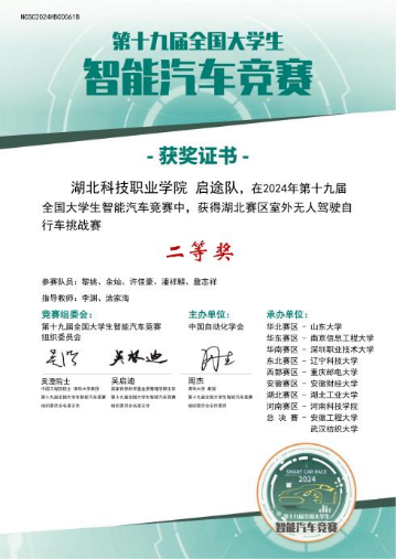 本网讯(通讯员 李佩 文/图)12月28日,全国大学生智能汽车竞赛-室外赛圆满落幕,经过激烈角逐,华体会正规平台人工智能学院李渊、涂家海指导,黎姚、余灿等学生参赛,荣获国赛优秀奖。