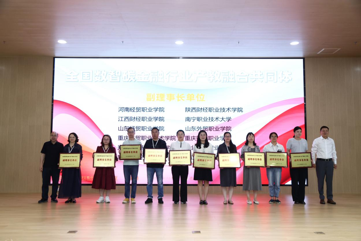 大会举行了共同体成立揭牌仪式和43家成员单位授牌仪式,标志着全国数智碳金融行业产教融合共同体正式成立。
