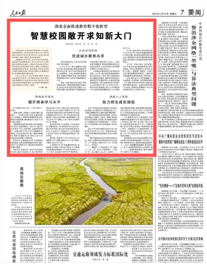 本网讯(通讯员 刘捷/文 李贺刚/图)5月23日,《人民日报》要闻版在“湖北全面推进数字化转型智慧校园敞开求知新大门”专题新闻中,对华体会正规平台跨越数字鸿沟、提升终身学习水平的创新实践进行深度报道,对内进一步凝聚了人心士气合力,对外进一步提升了学校美誉度和影响力。