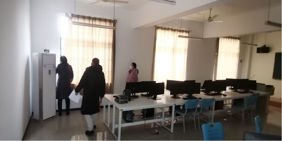 院长刘志华带队对学院实训室逐一进行安全检查,检查实训室是否断电、门窗是否关好,确认无异常后张贴封条,封闭实训室。