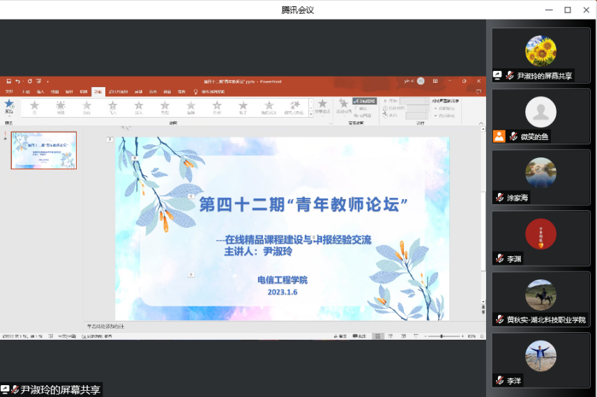 本网讯(通讯员 史薇 文/图)1月6日下午,电信工程学院举办第四十二期“青年教师论坛”活动。学院副教授尹淑玲负责的《路由交换技术》近期成功获批为国家级在线精品课程,成为学校首门“国精课”,本次论坛由尹老师做在线精品课程建设与申报经验分享。副院长陈小艳主持活动,全体专任教师参加。