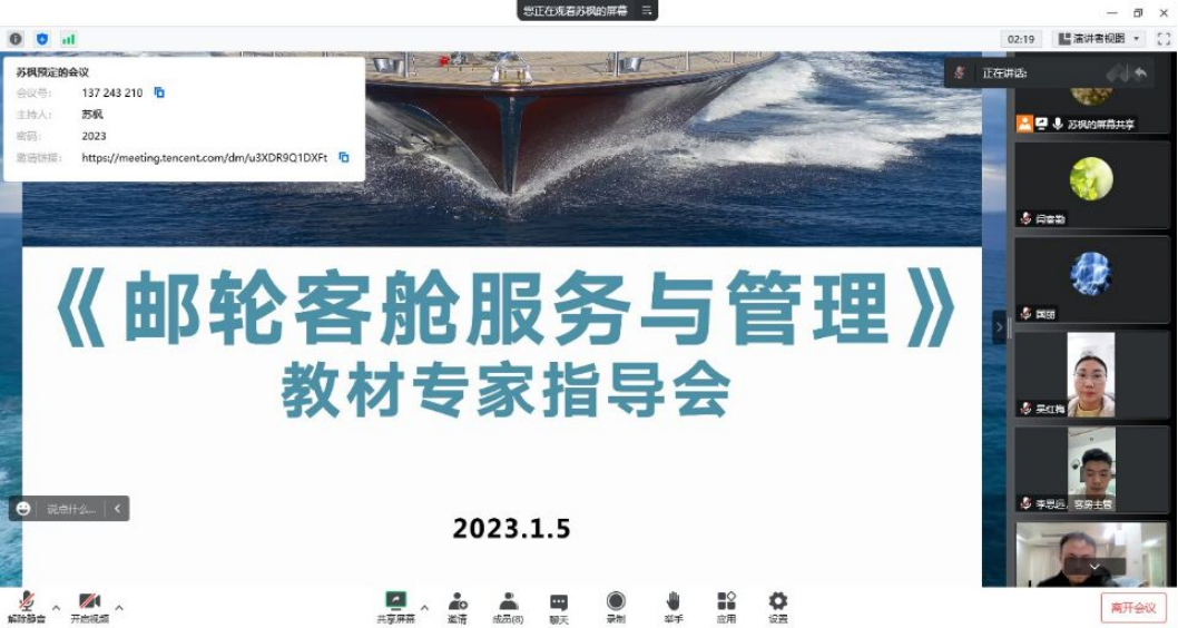 本网讯(通讯员 闫秦勤 文/图)1月2日至5日,工商管理学院《邮轮客舱服务与管理》课程建设团队先后召开该课程教材编写研讨会和教材编写专家指导会,推进党的二十大精神进教材,加强教材建设与管理。