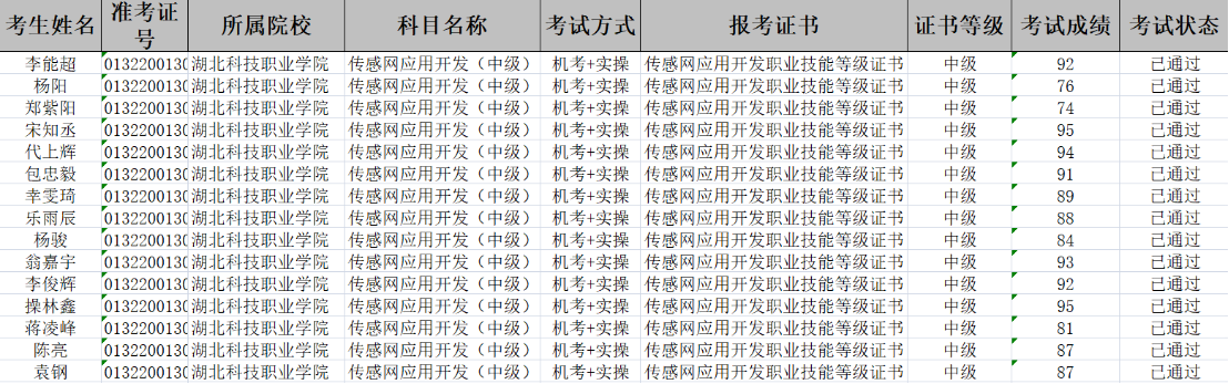 本网讯(通讯员 鲍毅 文/图)近日,2022年最后一批“1+X”传感网应用开发等级证书考试成绩公布,华体会正规平台学子高质量通过本次证书考试。2022年软件工程学院物联网应用技术专业组织2020级学生参加传感网应用开发等级证书考试并全部报考中级证书。考试通过率为100%,其中:90分以上的占46.7%,80分以上的占40%,70分以上的占13.3%。